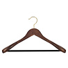 Mantel / kostuumhanger (geknikt) beukenhout walnoten gebeitst met messinghaak, schouderverbreding en anti-slip broeklat
